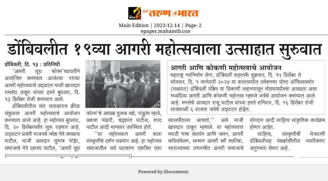 Agri Mahotsav at Dombivli from 12th to 20th December